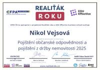 S paní Nikol Vejsovou byla spolupráce naprosto skvělá. Byla velmi ochotná, profesionální a vždy rychle reagovala na jakékoliv dotazy. Celý proces proběhl hladce a díky jejímu přístupu bylo vše výrazně jednodušší. Velmi si cením její pomoci a rozhodně ji mohu doporučit.