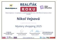 Slečna Nikol Vejsová mi byla doporučena úplně náhodou. A musím říci, že kdyby všichni pracovali jako ona, tak to je pecka. Kdykoliv jsem potřebovala ohledně nemovitosti poradit, nebyla jsem si s něčím jistá, tak odpověděla klidně i o půlnoci. Je vidět, že jí práce baví a je stále usměvavá a neříká si o nic navíc, jako jiné realitky - ty by si z ní měli vzít příklad.