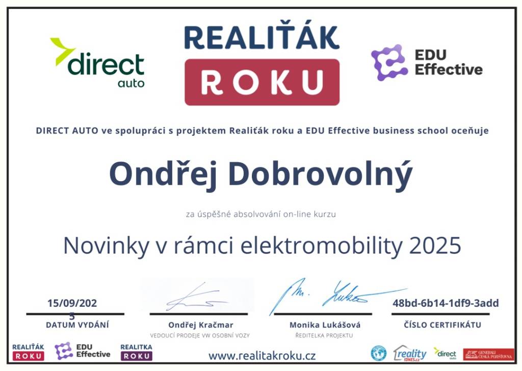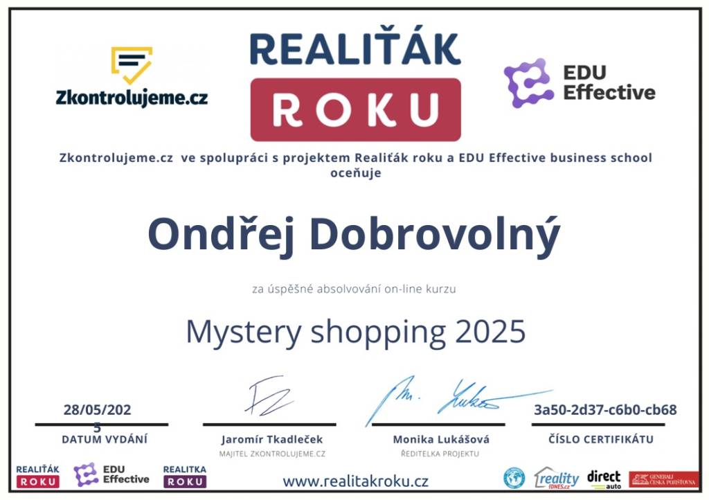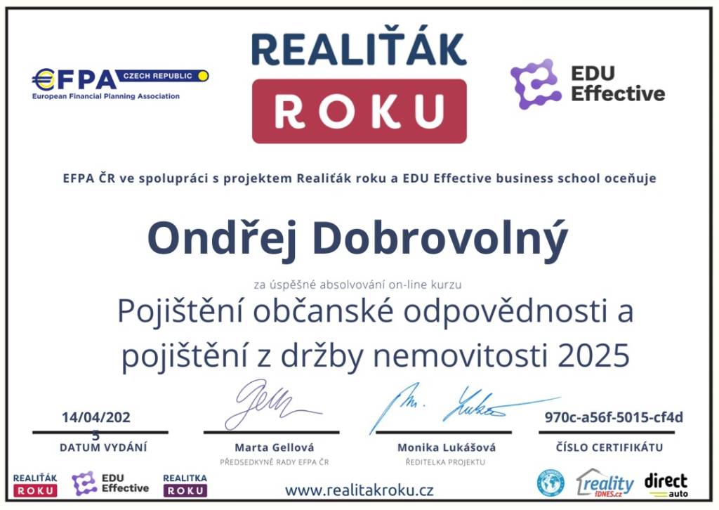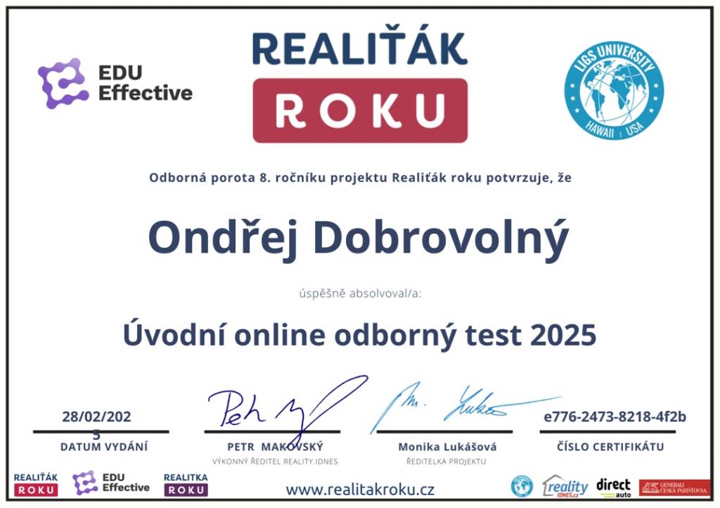 „Ondřej Dobrovolný = absolutní profík! Rychlé reakce, skvělá komunikace, vše vyřízeno během pár dní a naprosto bez stresu. Nejlepší makléř, se kterým jsem kdy jednal. 5 hvězd a velké díky! Doporučuji všemi deseti!“