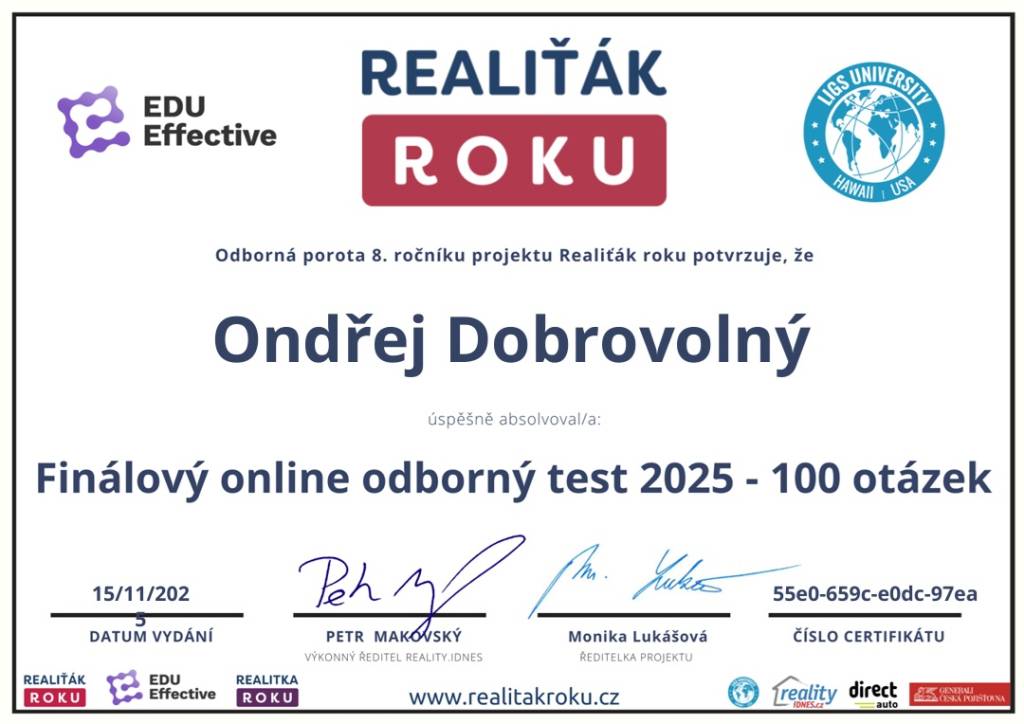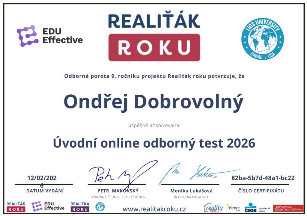 Chci poděkovat makléři Ondřeji Dobrovolnému za profesionální jednání, rychlý servis a výbornou komunikaci.