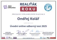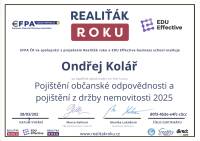 Realizovaná spolupráce s panem realitním makléřem Ondřejem Kolářem byla pro mne velmi profesionální, rychlá a na vysoké organizační úrovni. Líbilo se mi použití moderních on-line systémů nejen při práci s advokátní úschovou, i když tyto systémy byly pro mne zcela nové. Možnost on-line informace a sledování advokátní úschovy velice přispívá ke klidnému procesu nákupu nemovitosti. Je znát, že pan Kolář se v realitních činnostech setrvale vzdělává a klientům poskytuje velice moderní služby. Oceňuji také příjemnou drobnost jako například proplacení ověření podpisu na smlouvě panem makléřem. V případě, že bych potřebovala v budoucnu další realitní službu, ráda pana Koláře vyhledám.