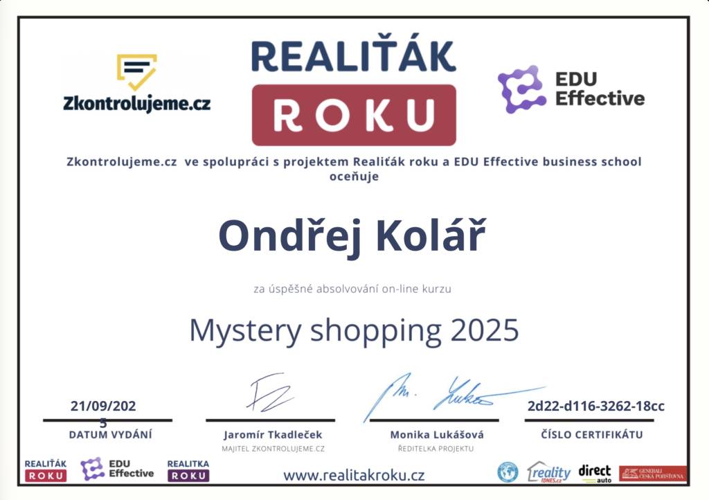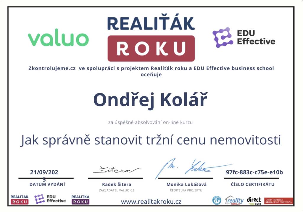 Služby realitního makléře jsem využil již několikrát, mohu tedy srovnávat. Potvrzuji, že právě pan Ondřej Kolář patří mezi špičku ve svém oboru. Pro smluvní dokumentaci využívá moderní technologie a kvalitní právní servis – to mi imponuje a vyhovuje nejvíc. Veškerá jednání byla velmi rychlá a vstřícná, díky profesionálnímu přístupu jeho kanceláře jsme byli schopni efektivně zkrátit veškeré lhůty a procesy. Jeho služby mohu vřele doporučit jak pro prodávající, tak pro kupující.