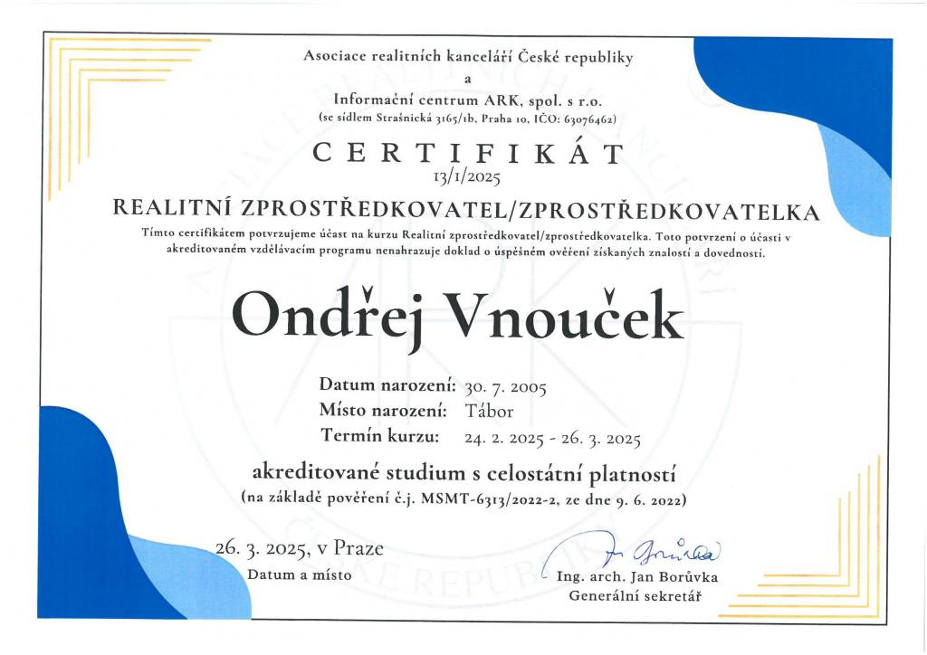 3.4.2025, Zkouška odborné způsobilosti pro obor Realitní zprostředkovatel