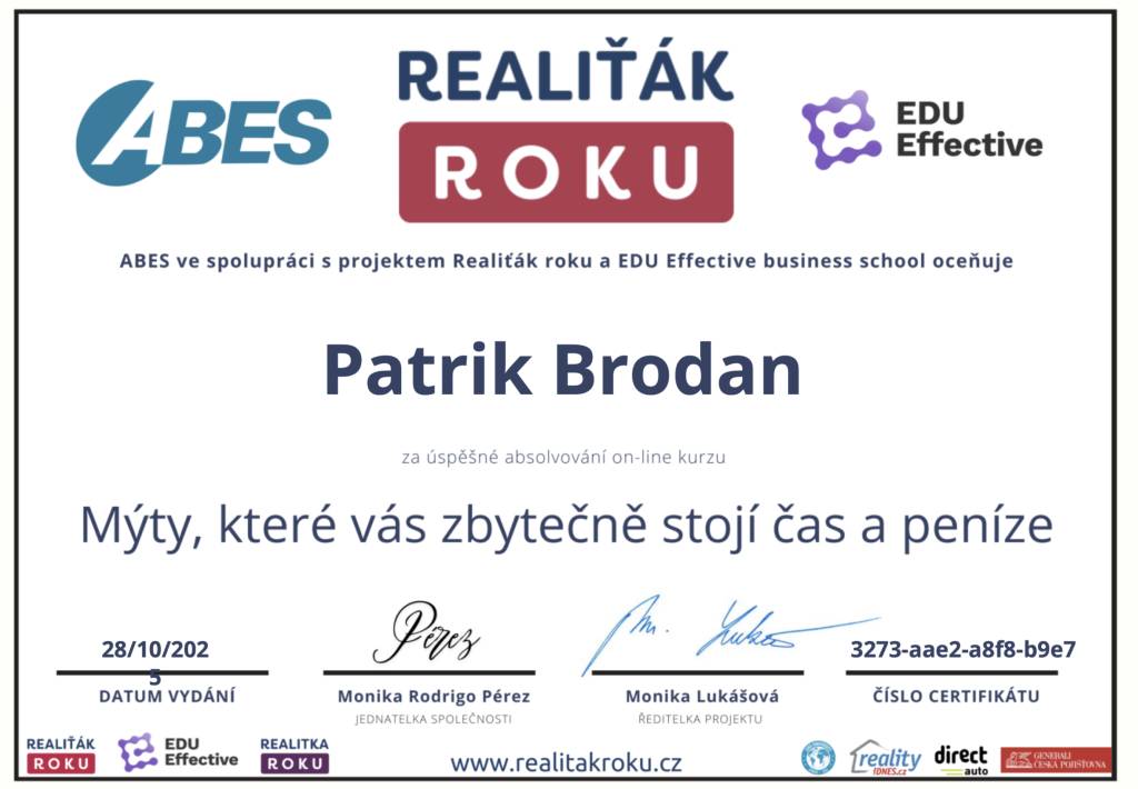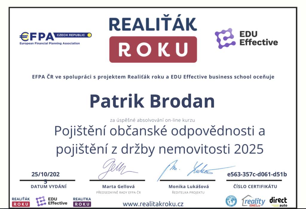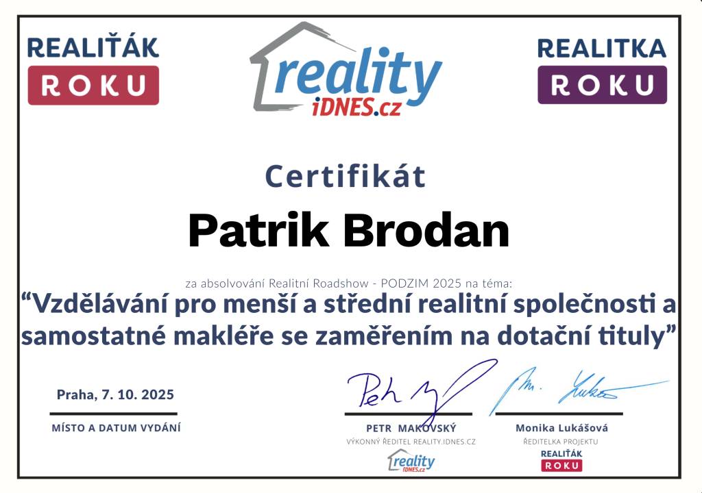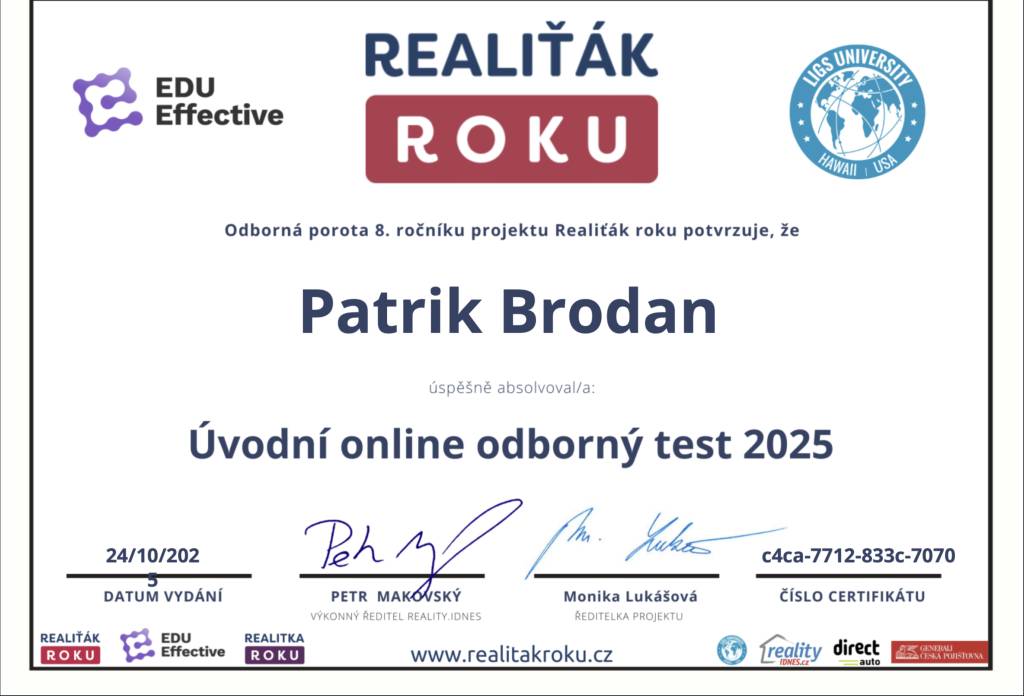od roku 2004 certifikovaným realitním makléřem a specialistou pohybujícím se v různých segmentech realitního trhu. Zakládám si na dlouhodobých vztazích se svými klienty, kterým nabízím velmi nadstandardní péči a servis. Žádný problém není k tomu, aby se nedokázal vyřešit. Být úspěšný pro mě znamená mít opakované obchody se spokojenými partnery, kteří mě na základě své zkušenosti ze spolupráce se mnou rádi doporučí své rodině, známým a obchodním partnerům.