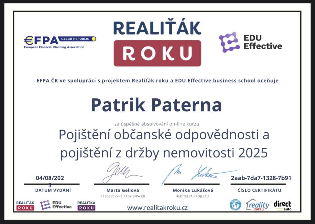 Moje zkušenost s Paterna Invest je veskrze výborná. Oceňuji profesionální, zároveň lidský přístup a hladký průběh celého procesu. Na všem jsme se krásně domluvili. Doporučuji a věřím ve spolupráci i v budoucnu.