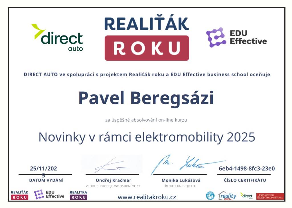 „Služby makléře Pavla Beregsáziho jsou velmi profesionální. Přístup ke klientovi, vzájemná komunikace, informovanost a rychlost to vše bezchybně splňuje. S tímto makléřem spolupracuji opakovaně a vždy jsem byla velmi spokojená. 100% doporučuji. Marie Faltýnková“