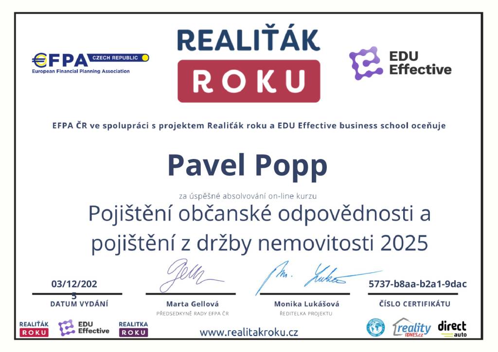 Pan Popp pro nás kompletně zorganizoval schůzky u notáře/právníka, včetně domluvy s majitelem bytu.