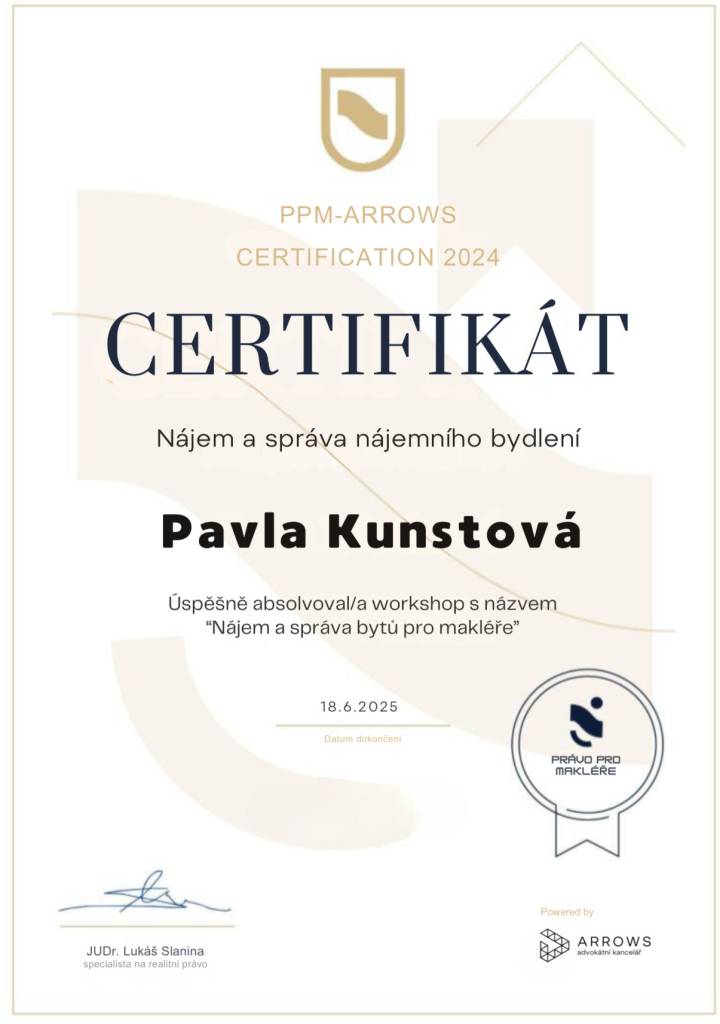 Jmenuji se Pavla Kunstová a jsem realitní makléřka z Ostravy. Má první realitní, pracovní zkušenost byla v roce 2017 v realitní kanceláři, kde jsem pracovala jako asistentka a už tehdy se mi tento obor velmi líbil. Pomáhat lidem plnit jejich sny o krásném bydlení a zároveň dělat práci, která mě baví, mi přišlo skvělé. Vzhledem k tomu, že sama mám rodinu, je pro mě důležité vracet se domů, kde se cítíme bezpečně a útulně. Proto i Vám velmi ráda pomůžu s bydlením, ať už budete chtít prodat, pronajmout nebo koupit vysněnou nemovitost k bydlení či podnikání. Kromě osobního přístupu je pro mě také klíčová oboustranná důvěra a spokojený klient, který ocení dobře odvedenou práci. Pokud potřebujete v realitách poradit, nebo pomoct, neváhejte se ozvat. Budu se těšit na naši případnou spolupráci.
