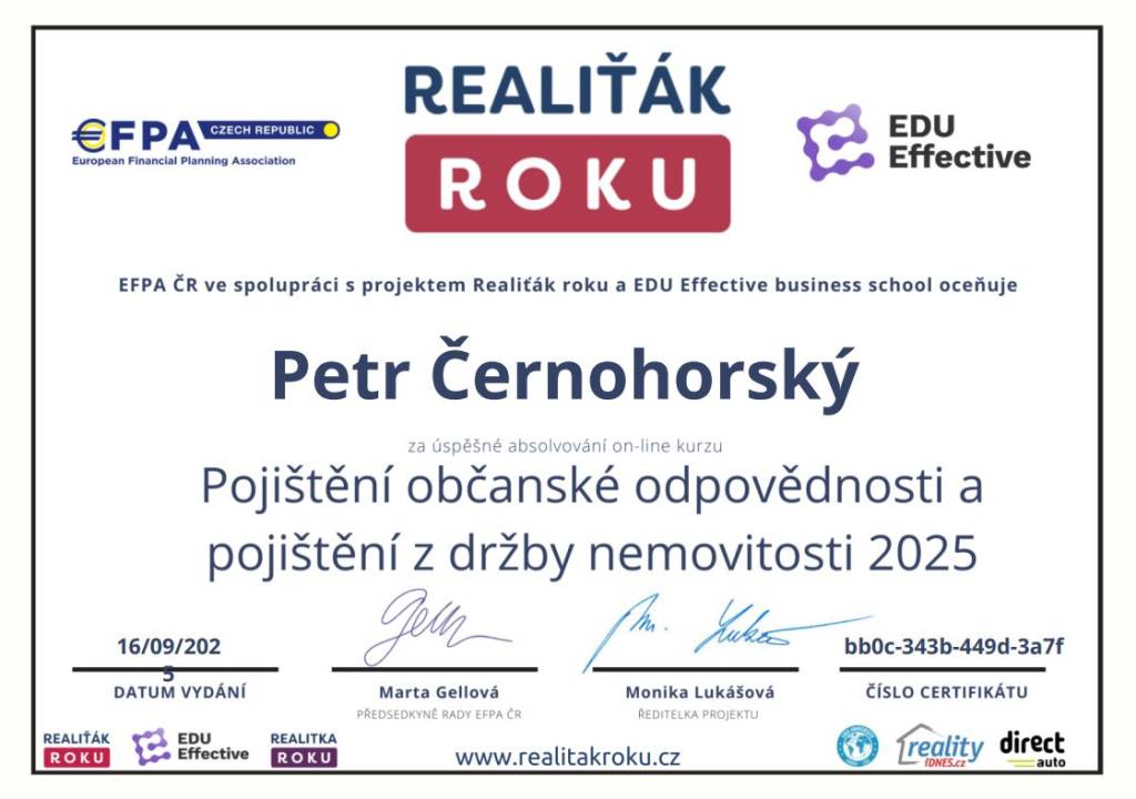 Jsem realitní makléř a investor, který nejen zprostředkuje koupi, prodej nebo pronájem nemovitostí. Pomáhám klientům s orientací na trhu nemovitostí, poskytuji informace o aktuálních trendech a cenách. Mám znalosti trhu a právních aspektů týkajících se nemovitostí. Dokážu vyřešit i zdánlivě nerealizovatelné obchody (exekuce, insolvence, svéprávnost). Poskytuji stanovení ceny obvyklé pro dědické řízení, poradím s cenou, naslouchám klientům s jejich potřebami.