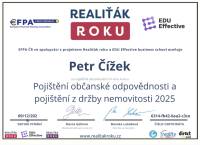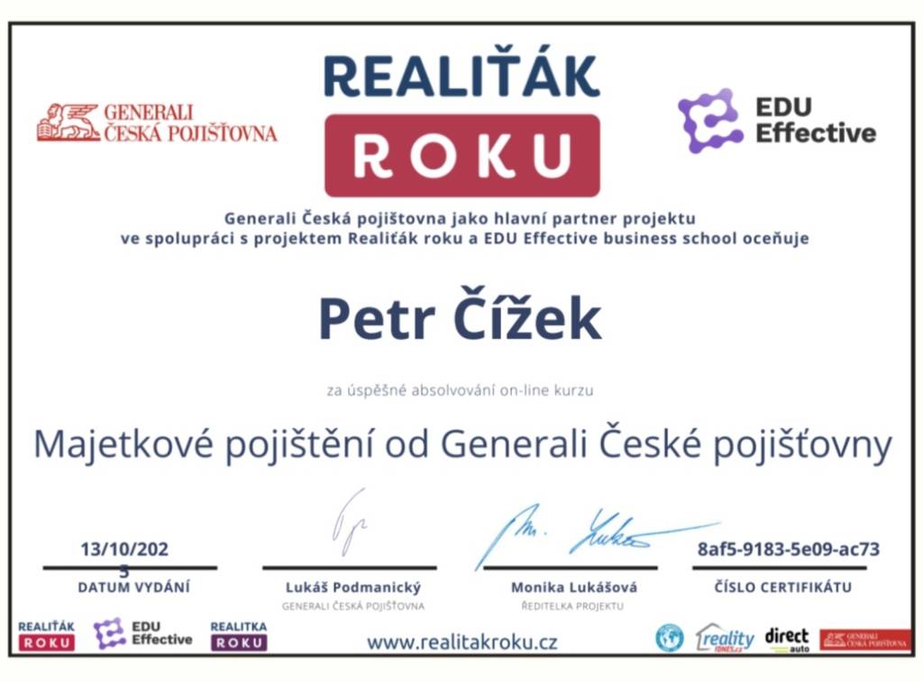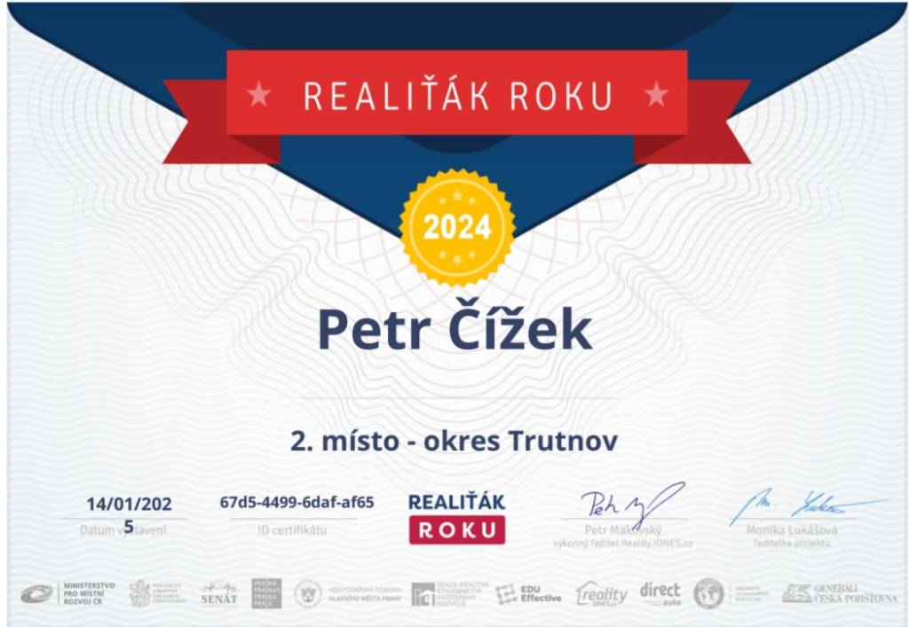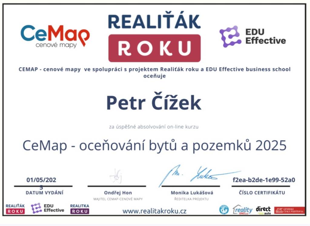 Prodával jsem nemovitost a tato realitní kancelář mi byla doporučena. Kontaktoval jsem Mgr. Petra Čížka a jelikož jsem neměl s prodejem žádné zkušenosti, domluvil jsem si s ním schůzku. Mgr. Petr Čížek mi vše detailně vysvětlil a ujal se nemovitosti. Veškerá komunikace v průběhu prodeje byla bezchybná. Na Mgr. Čížka se dalo vždy obrátit s jakýmkoli dotazem či požadavkem. Jednání z jeho strany bylo maximálně profesionální. Po této zkušenosti již v průběhu prodeje jsem se na něj obrátil s požadavkem o koupi jiné nemovitosti. Vysvětlil jsem mu své požadavky na novou nemovitost a on se na mě vždy obrátil. Stručně řečeno, stará nemovitost prodána, nová koupena. Pan Mgr. Petr Čížek je skutečný profesionál ve svém oboru a jeho služby mohu jen doporučit.