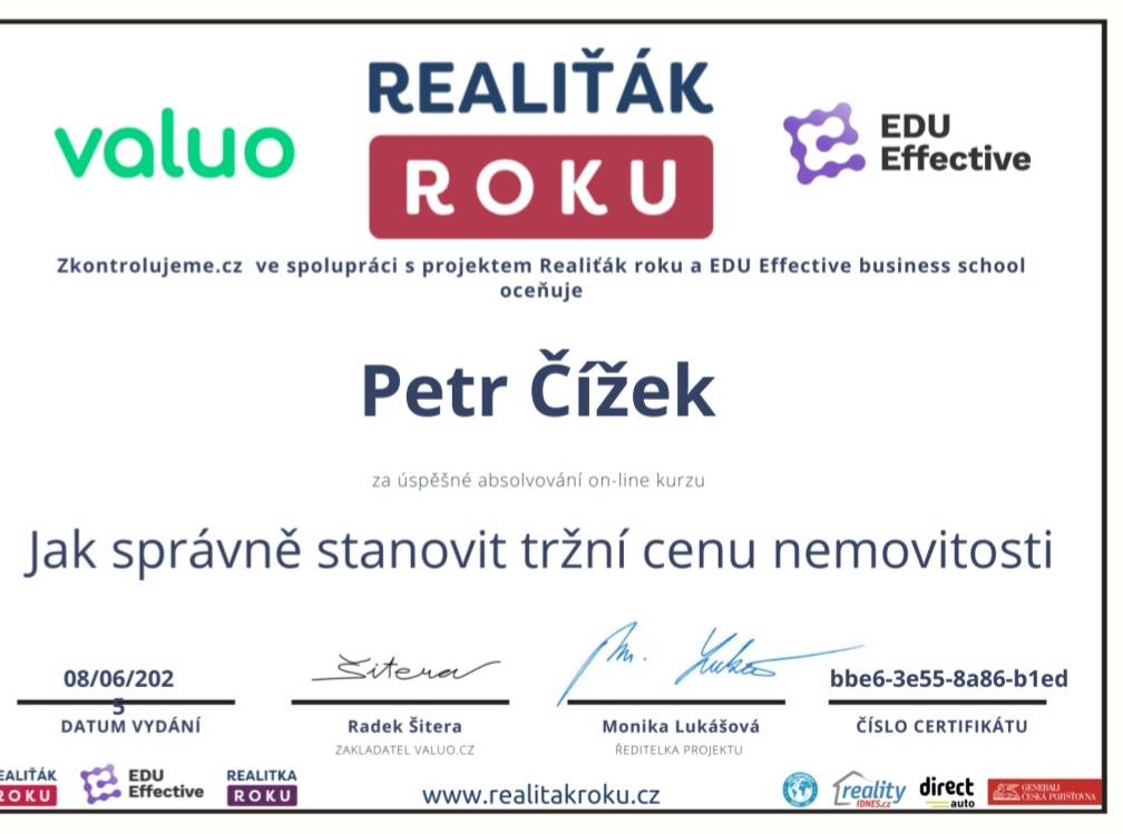 Pan Petr Čížek je profesionální a ochotný realitní makléř. Děkuji za spolupráci a mohu jen doporučit.