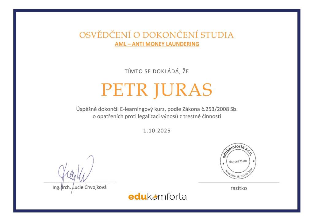 Doporučuji pana Petra Jurase. Zejména oceňuji jeho profesionální přístup, přehled v oboru a flexibilitu. Námi svěřené záležitosti se věnoval s plným nasazením a k naší spokojenosti. Děkujeme.