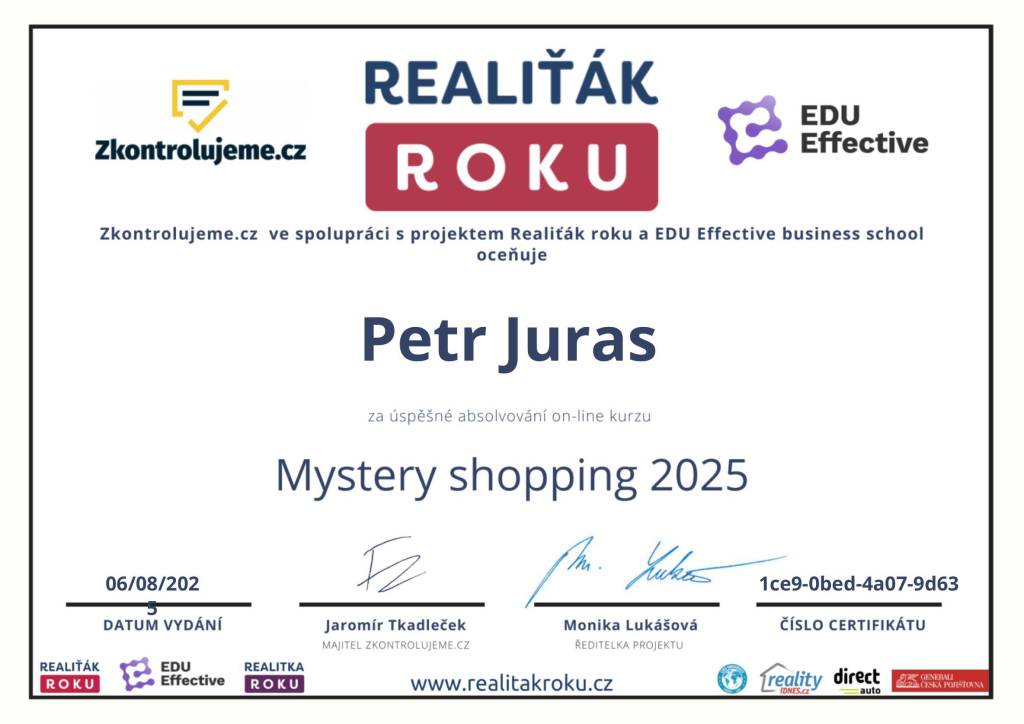 Pan Juras vždy vše dle mých představ a dohodnutých pravidel spolupráce na více obchodech byla perfektní od nabídky, jednání po realizaci.