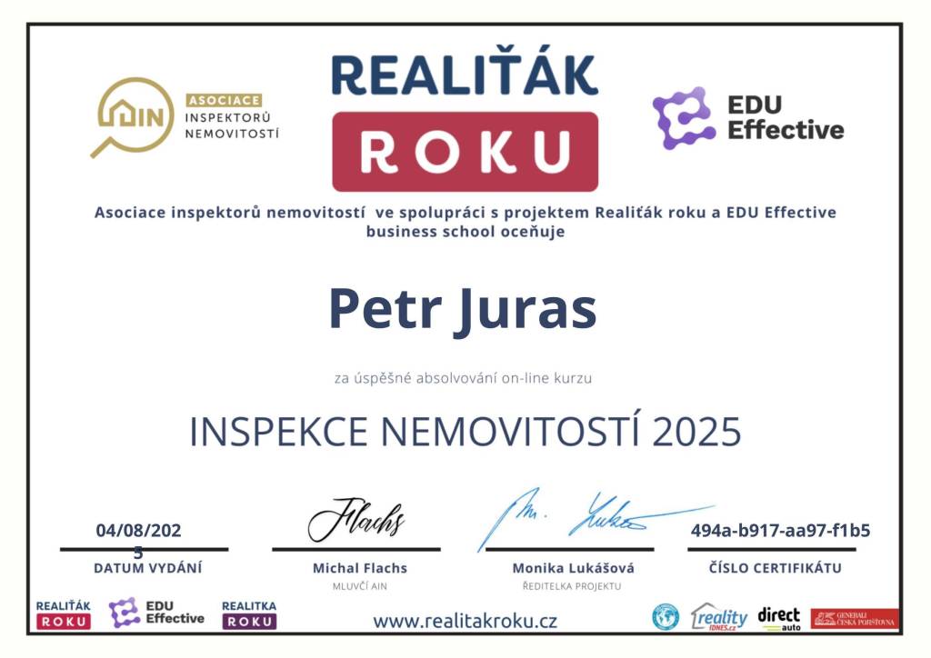 Děkuji panu Jurasovi za velmi dobře odvedenou práci při prodeji mého domu, od prezentace po kompletní proces.