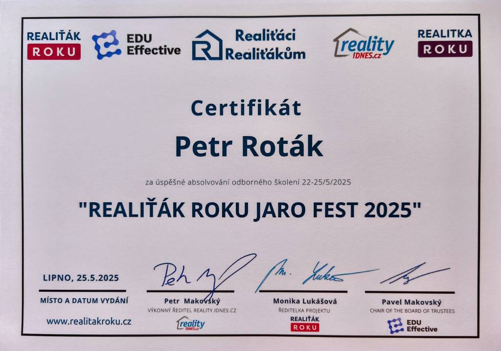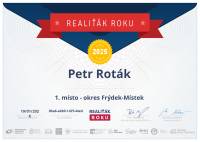 Pan Petr Roták je velice příjemný a hlavně precizní člověk a především profesionál ve svém oboru. Pro mě, jako pro úplného laika a "negramotu" ve světě realit a prodeje nemovitostí, byl tou nejlepší volbou. Celým procesem prodeje mě naprosto bezproblémově provedl, vše mi vysvětlil a hlavně, jeho přístup byl maximálně nakloněn k mé největší spokojenosti. Pokud tedy hledáte profesionála s empatickým, proklientským a precizním přístupem, mohu pana Rotáka jen a jen doporučit.