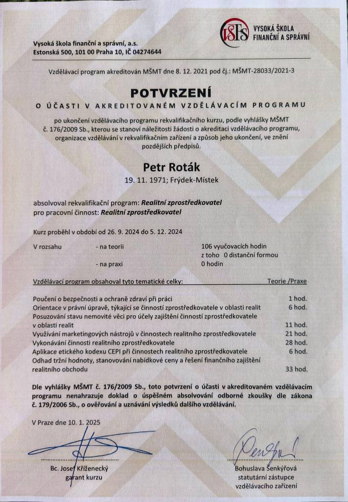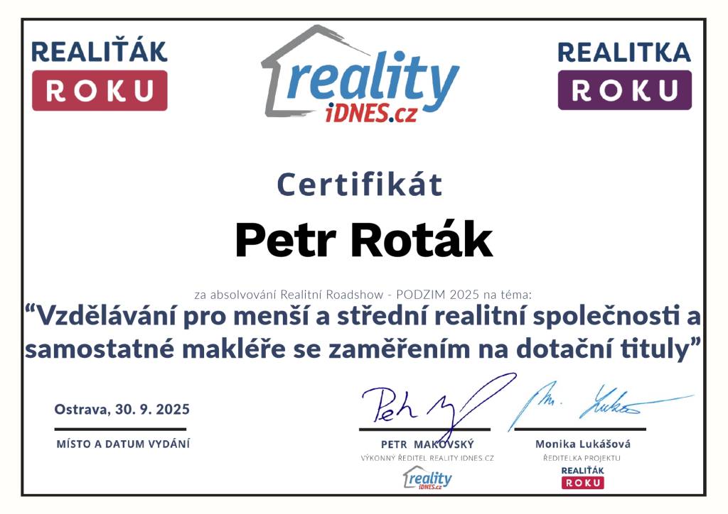 Profesionální přístup, ochota a v neposlední řadě odbornost, to jsou hlavní znaky makléře Petra Rotáka.