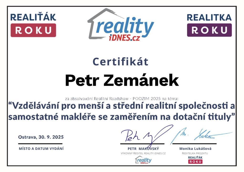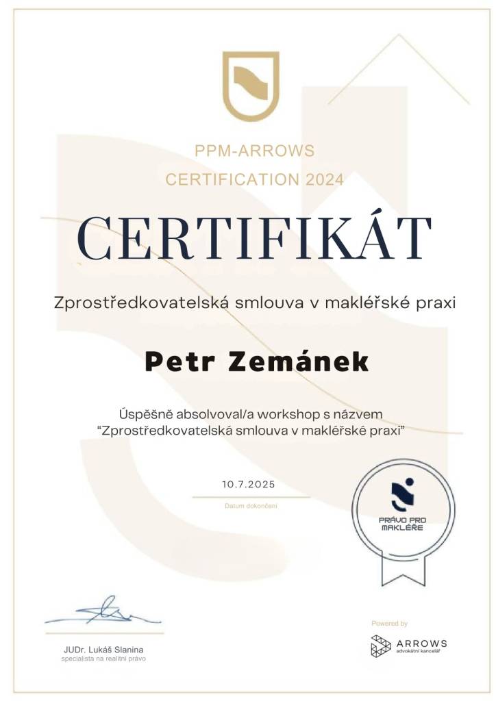 S prací pana Petra Zemánka jsem velmi spokojen. Prezentace byla provedená na profesionální úrovni. Při jednání s klienty a zájemci o pozemek byl vždy velmi vstřícný a přehledný.