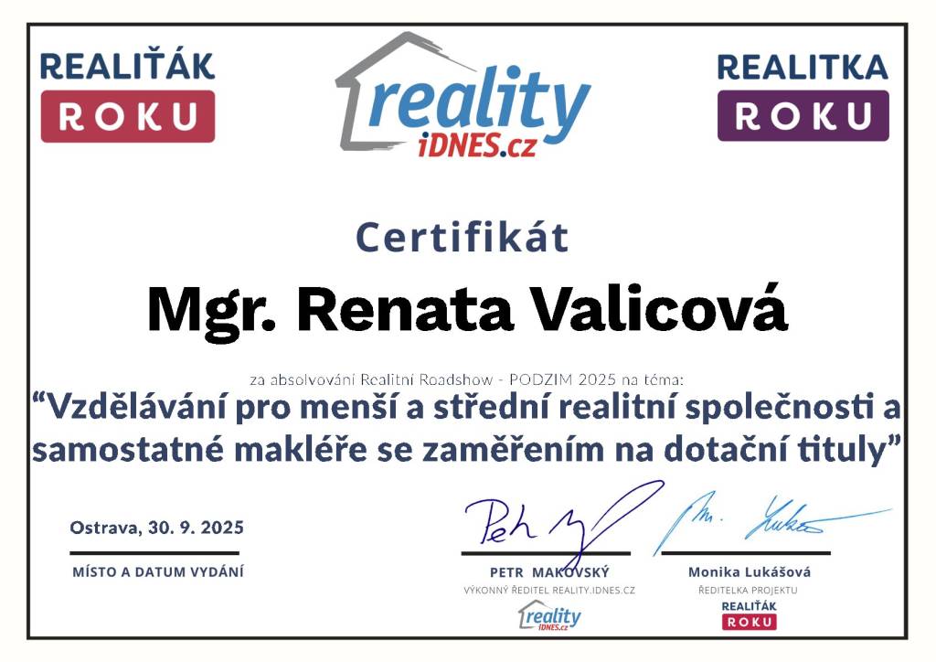 K profesi realitního specialisty jsem se nedostala náhodou. Zájem o bydlení a nemovitosti mě provází už řadu let. I když jsem se od něj během života na čas vzdálila, touha a zvědavost nikdy nezmizely. V určité fázi jsem si řekla jediné: „Je čas splnit si vlastní sen.“ V roce 2020 jsem začala svou cestu v jedné z největších světových realitních kanceláří. Splnila jsem zákonnou certifikaci a získala důležité základy. O rok později, v polovině roku 2021, jsem se vydala vlastní cestou a pod značkou Nemovitosti REN začala budovat svou realitní kariéru. Od té doby jsem absolvovala řadu odborných školení a zkoušek. Neustále se vzdělávám, sleduji moderní trendy a zlepšuji své služby tak, abych svým klientům nabídla to nejlepší. Bydlení pro mě není jen základní potřebou – je to prostor pro sny, plány a osobní rozvoj. A přesně tak k tomu přistupuji i při své práci.