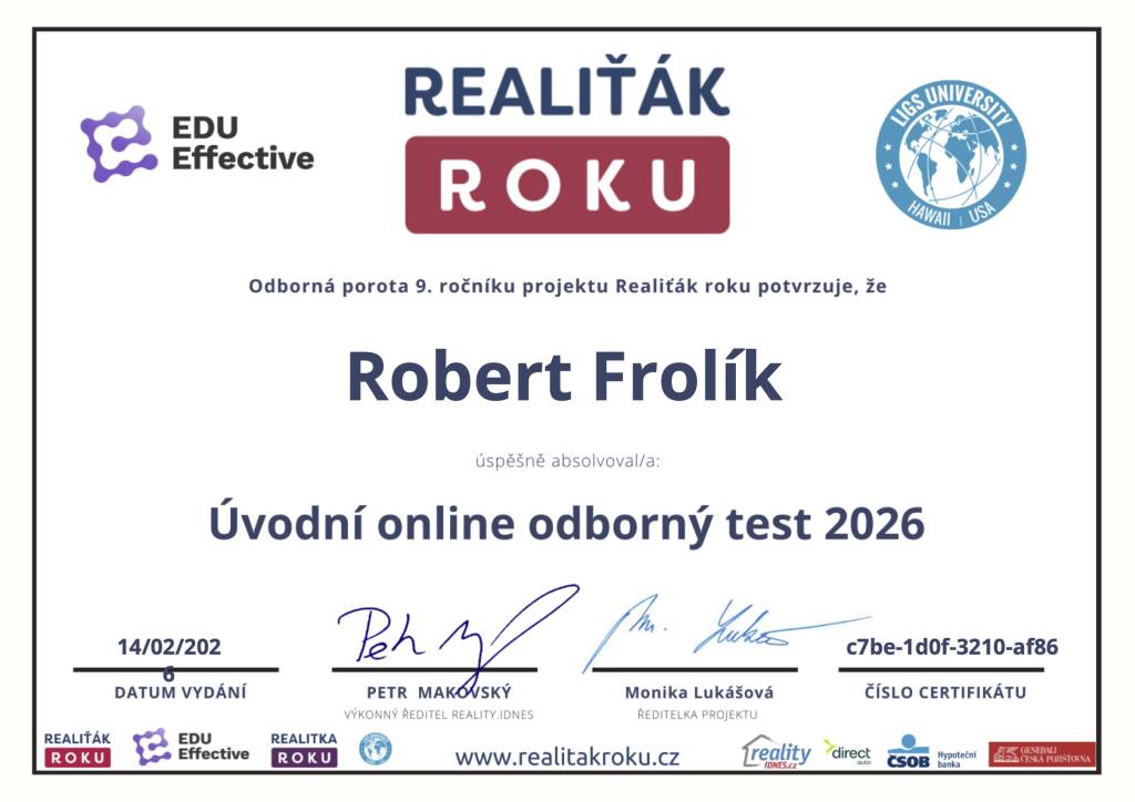 MAKLÉŘINA MĚ PROSTĚ BAVÍ! ... a dělám jí od roku 1999 ... Už máte svého realitního makléře? Možná je zrovna ten správný čas si ho vybrat! Rád se s Vámi setkám! U mě, u Vás, v kavárně ... třeba i jen tak, nezávazně. Vše o mě najdete na https://www.robertfrolik.cz