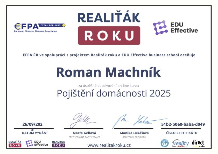 Ráda bych se podělila o skvělou zkušenost s Romanem Machníkem, který mi pomáhal s prodejem mého domu ve Skřečoni. Od začátku bylo jasné, že má v oboru bohaté zkušenosti – vše bylo naprosto profesionální, promyšlené a dobře zorganizované.
