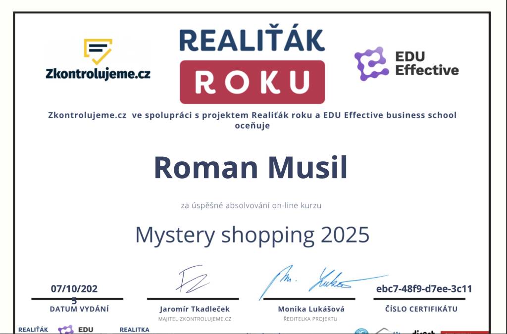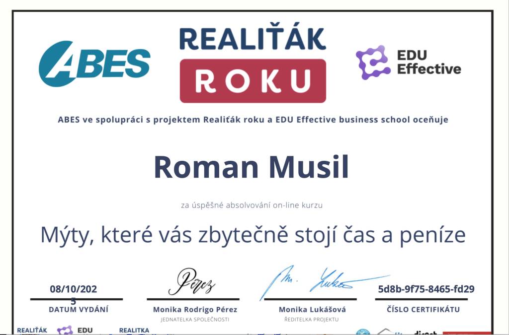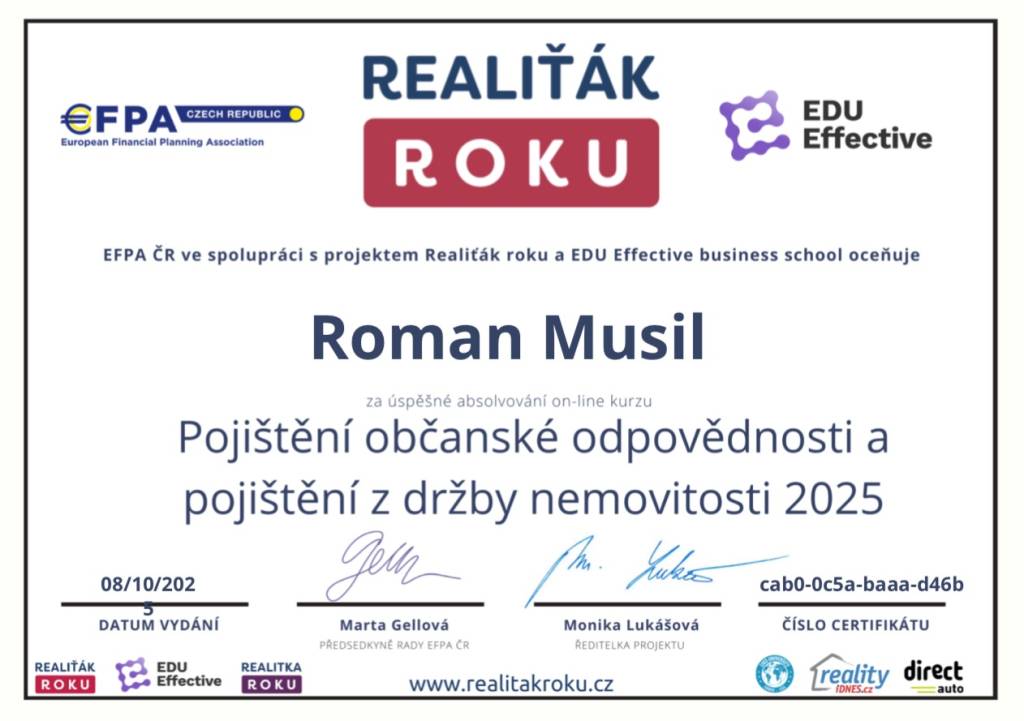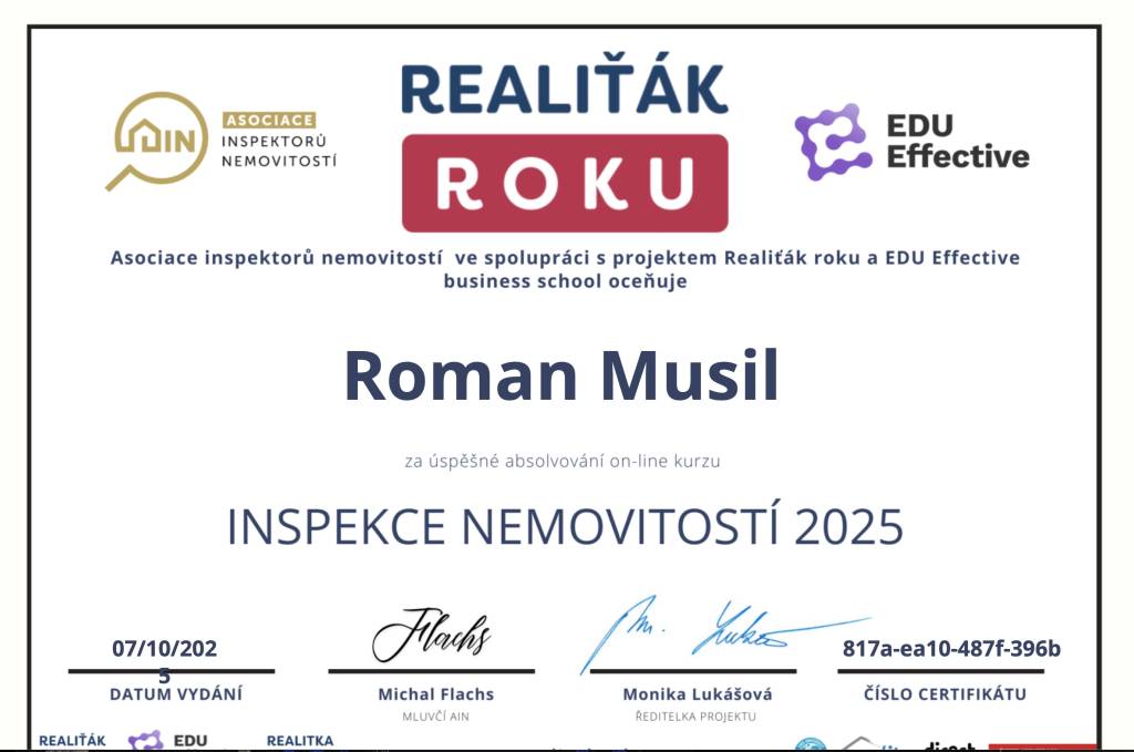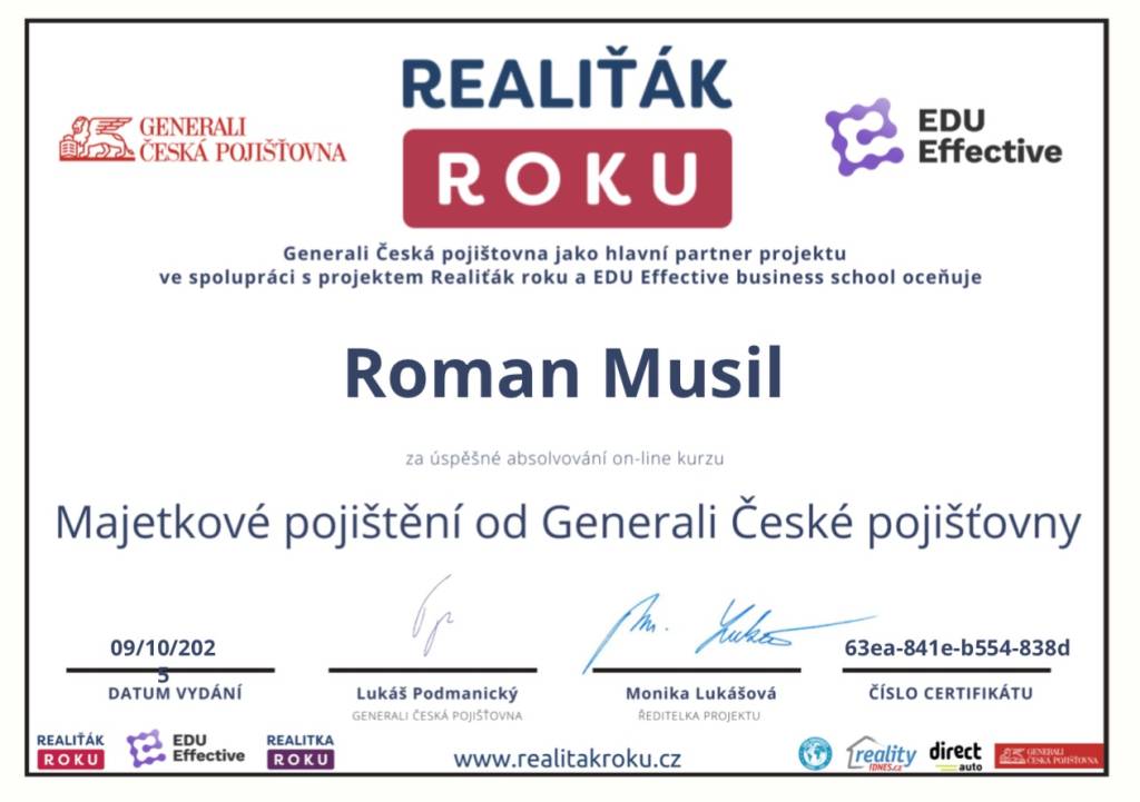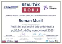 S panem Romanem Musilem jsme byli maximálně spokojení. Je spolehlivý, rychlý, všechno vyřídí bez zbytečných průtahů. Komunikace byla výborná, vždy vstřícný a ochotný poradit. Navíc velmi sympatický a lidský přístup.