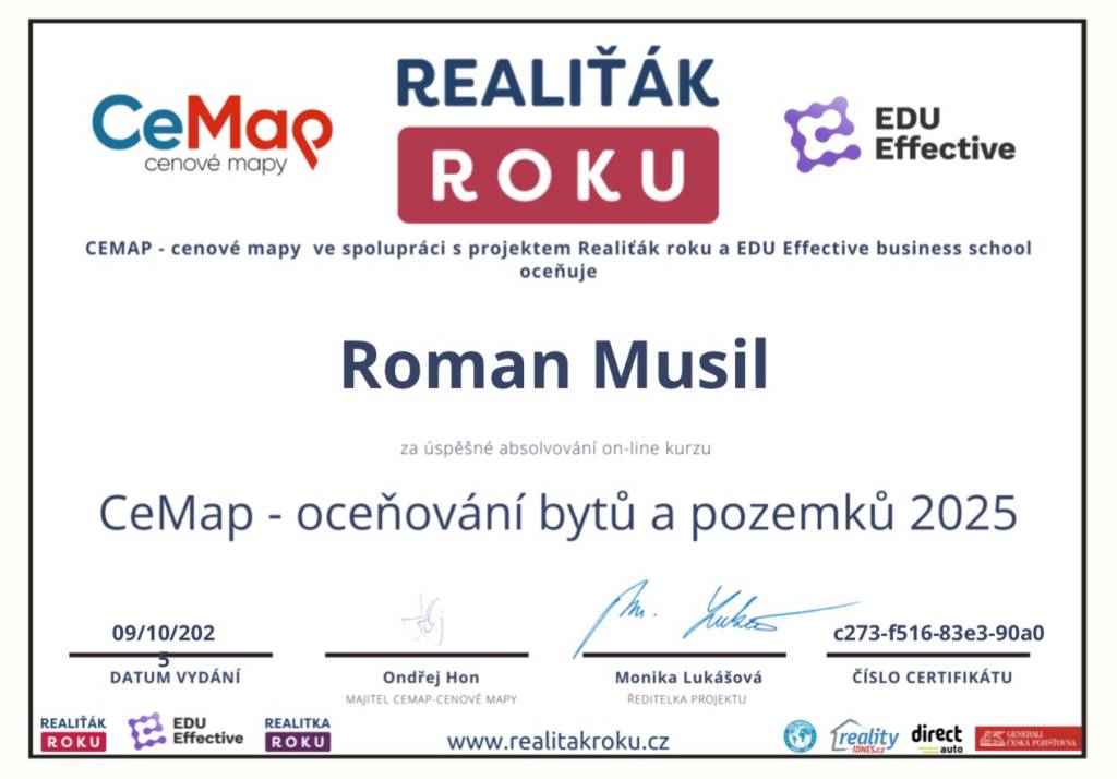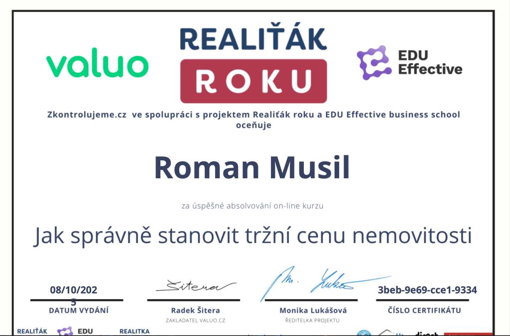 Dobrý den, ráda bych se podělila o svou zkušenost s realitním makléřem. Pan Roman Musil byl velmi profesionální, ale zároveň velmi příjemný, vstřícný. Sehnal nám s manželem nádherný byt přesně dle našich představ, pomohl nám vše zařídit, a kdykoliv jsem ho kontaktovala, vždy mi telefon zvedl a poradil mi. Sjednali jsme si spolu několik schůzek, z každé schůzky jsme odcházeli s čistou hlavou jelikož jsme věděli, že se vše rýsuje a že nám pan Musil bude vždy nápomocný. Velmi doporučuji, úžasný přístup a jde vidět, že pan makléř je špička v oboru.👍🏻👍🏻👍🏻👍🏻