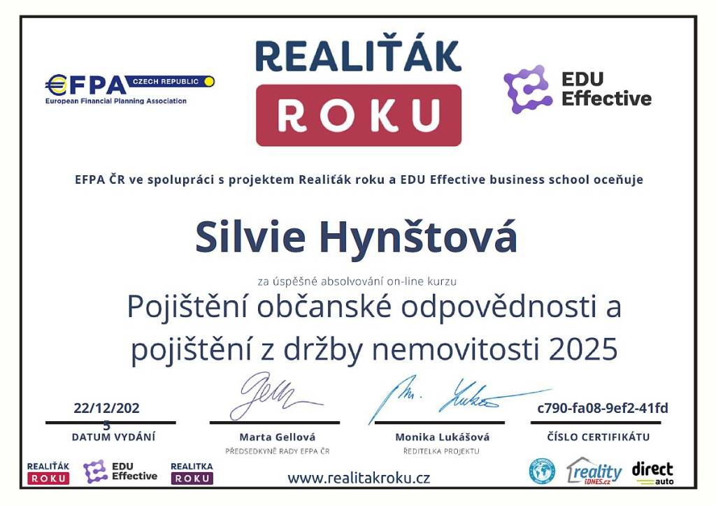 S realitní kanceláří ing. Silvie Hynčtové jsem byl nadmíru spokojen. Předně její příjemné a milé jednání s klientem, profesionální přístup ke své práci, kdy poradila a zařídila vše kolem prodeje naší nemovitosti. Úspěšný prodej díky ní byl pro nás, neznalé situace na trhu s nemovitostmi, opravdu snadný a rychlý. Pokud by se vyskytla situace, kdy bychom potřebovali opravdu dobrou realitku, máme úplně jasno, zvolili bychom zase tuhle makléřku, které tímto velmi děkujeme za poskytnuté služby.