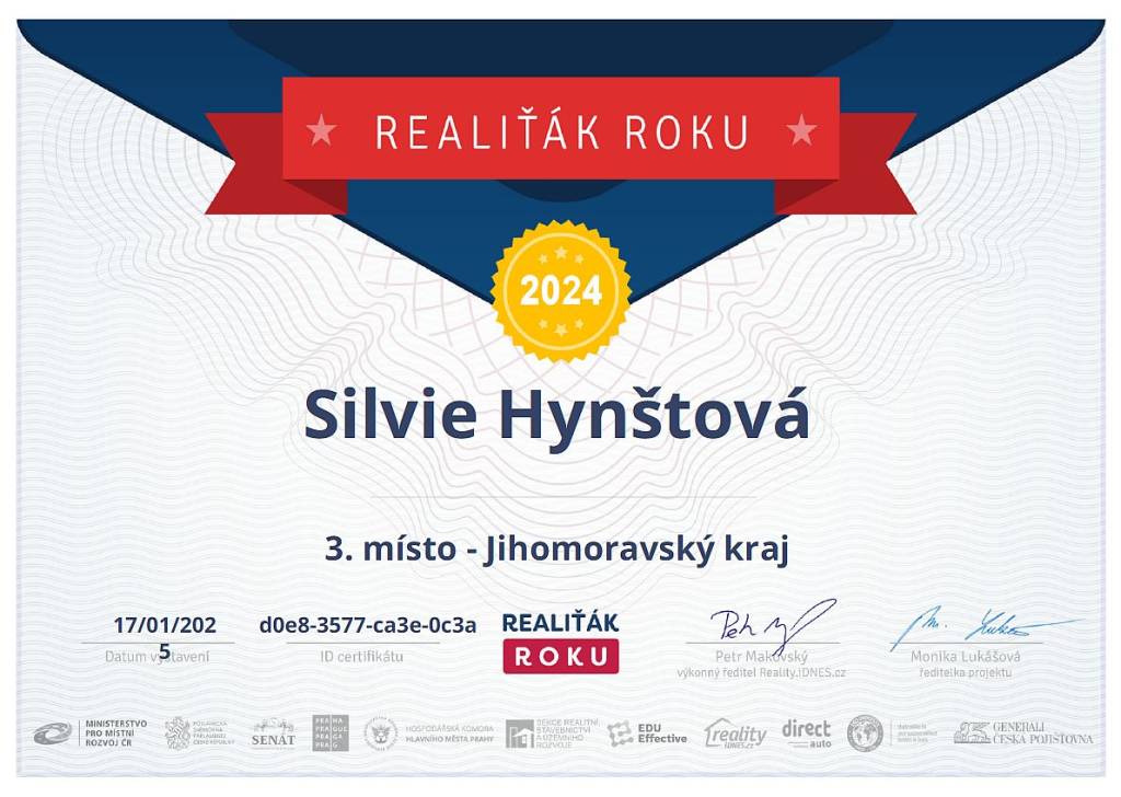 Ing. Silvie Hynštová je realitní specialista na pravém místě, nemáme nejmenší výhrady k její odvedené práci pro nás a doufáme že se jí podaří dosáhnout na prní příčky v hodnocení „REALIŤÁK ROKU“ - Šamalíkovi doporučují.