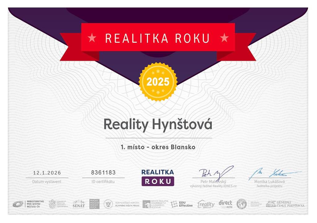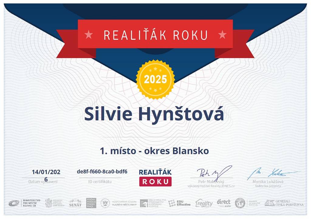 Mohu jen doporučit. Prodej pod vedením paní Hynštové byl bez problémů. Je to člověk na svém místě, který poradi se vším. Od vystěhování až po prodej. Její přístup je profesionální a lidský. Je to prostě realiťák roku.