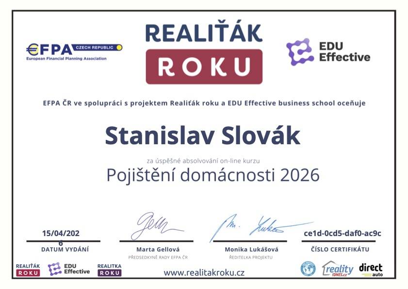 Spolupráce s panem Slovákem je naprosto skvělá, profesionální přístup s ohledem na individuální potřeby. Kdykoliv bych řešila situaci s nemovitostí, byl by pro mě znovu jasná volba.