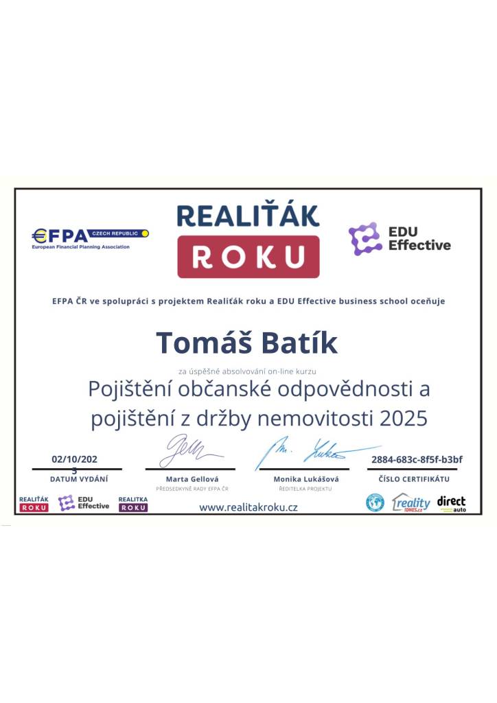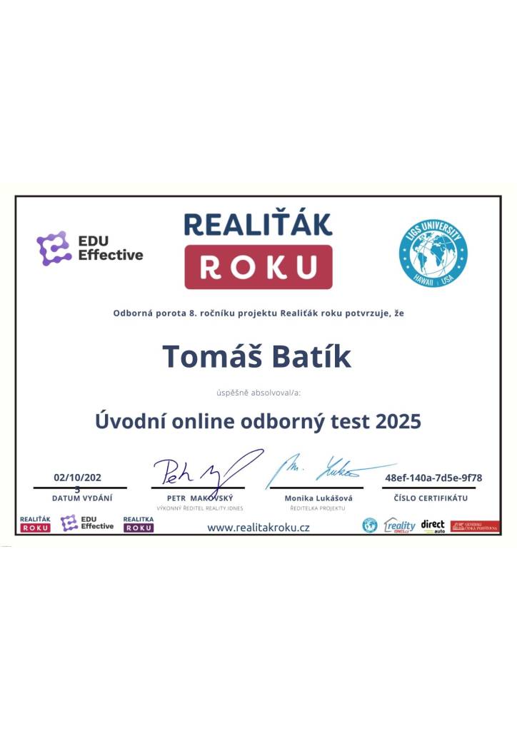 V realitách působím s jasným cílem – pomáhat lidem najít domov nebo bezpečně prodat jejich nemovitost. Zakládám si na otevřené komunikaci a přátelském jednání, protože vím, že obchod s bydlením je vždy i o emocích. Klientům nabízím nejen zkušenosti a znalosti trhu, ale hlavně lidský přístup a jistotu, že se na mě mohou spolehnout v každé fázi prodeje či koupě.