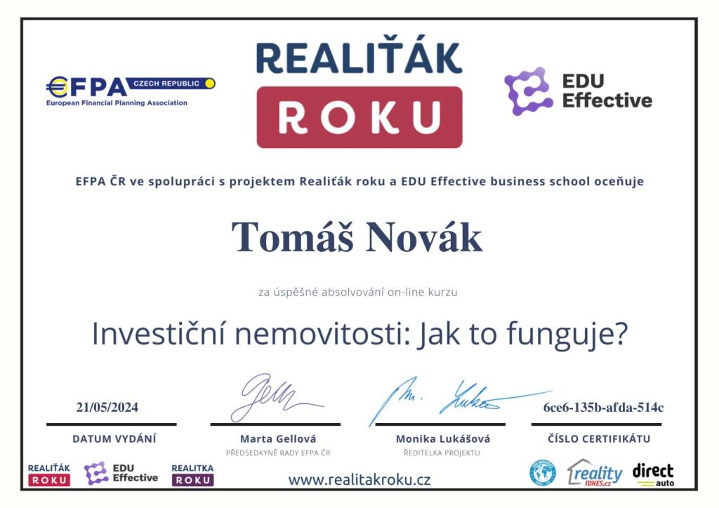 Tomáš Novák je naprosto profesionální a spolehlivý realitní makléř, kterého mohu vřele doporučit. Mám tu čest být jeho dobrým kamarádem a zároveň spolupracovat s ním při fotografování a natáčení nemovitostí, které prodává. Z této zkušenosti mohu potvrdit, že Tomáš klade obrovský důraz na detaily a kvalitu.