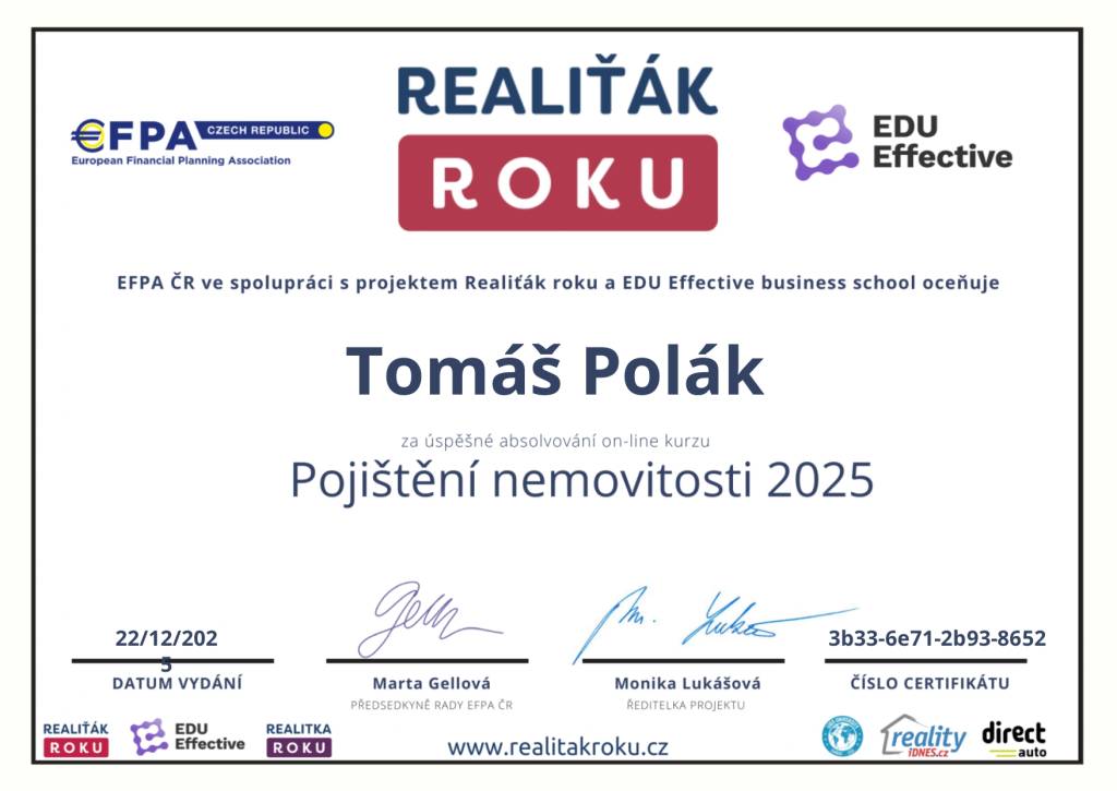 Od roku 2006 pracuji jako hypoteční a úvěrový poradce, v roce 2021 jsem se začal naplno věnovat i realitám. Nyní jsem tak schopen klientům nabídnout kompletní služby v podobě profesionální prezentace nemovitostí, aktivního vyjednávání až po zajištění financování. Klienti si na mně cení rychlosti, spolehlivosti, profesionality a zejména osobního přístupu, díky kterému se i složité obchody mění v úspěšné příběhy.