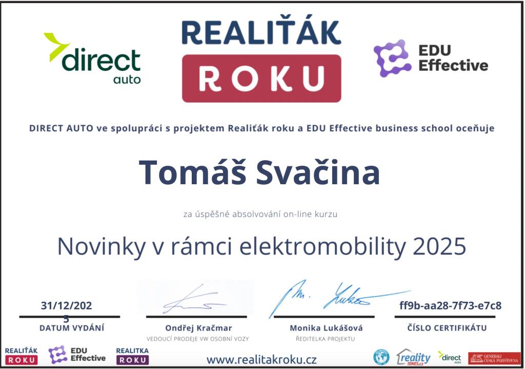 Jsem zkušený realitní makléř s praxí. Specializuji se na prodej, pronájem a kompletní realitní servis. Mým cílem je poskytovat klientům prvotřídní služby s využitím nejmodernějších technologií a profesionálního fotografického servisu. Díky mým dovednostem v oblasti jednání a hluboké znalosti trhu jsem schopen efektivně spojit prodávající s kupujícími a zajistit hladký průběh obchodu. Jsem tu, abych vám pomohl dosáhnout nejlepších výsledků při prodeji nebo pronájmu vaší nemovitosti. Spolehněte se na mě jako na svého důvěryhodného partnera v realitním světě.