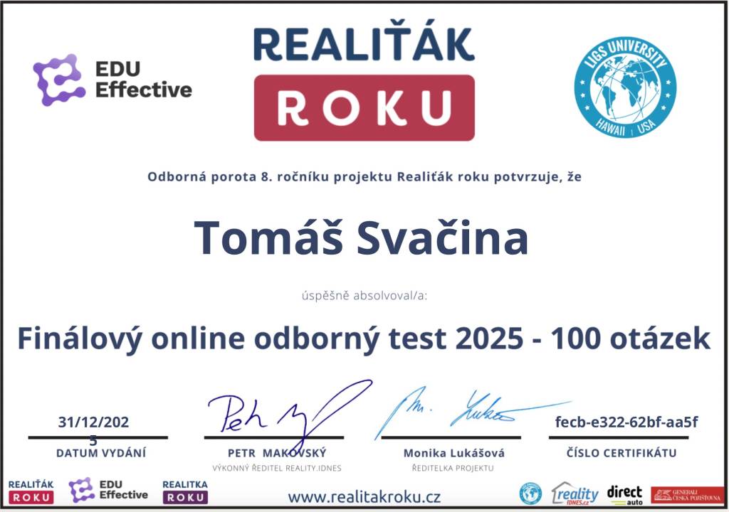 Spolupráce s panem Tomášem Svačinou byla výjimečná. Od prvního kontaktu až po samotný prodej bytu byl vždy maximálně profesionální, ochotný a vstřícný. Co ale musím vyzdvihnout nejvíce – a co dnes u makléřů rozhodně není samozřejmostí – je jeho osobní přístup a snaha opravdu pomoci, nikoli jen “rychle prodat”.