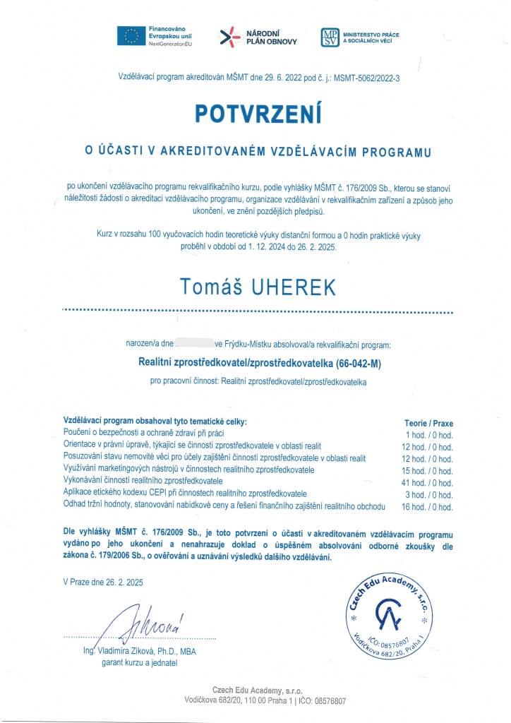 26.2.2025, Profesní kvalifikace Realitní zprostředkovatel (66-042-M)