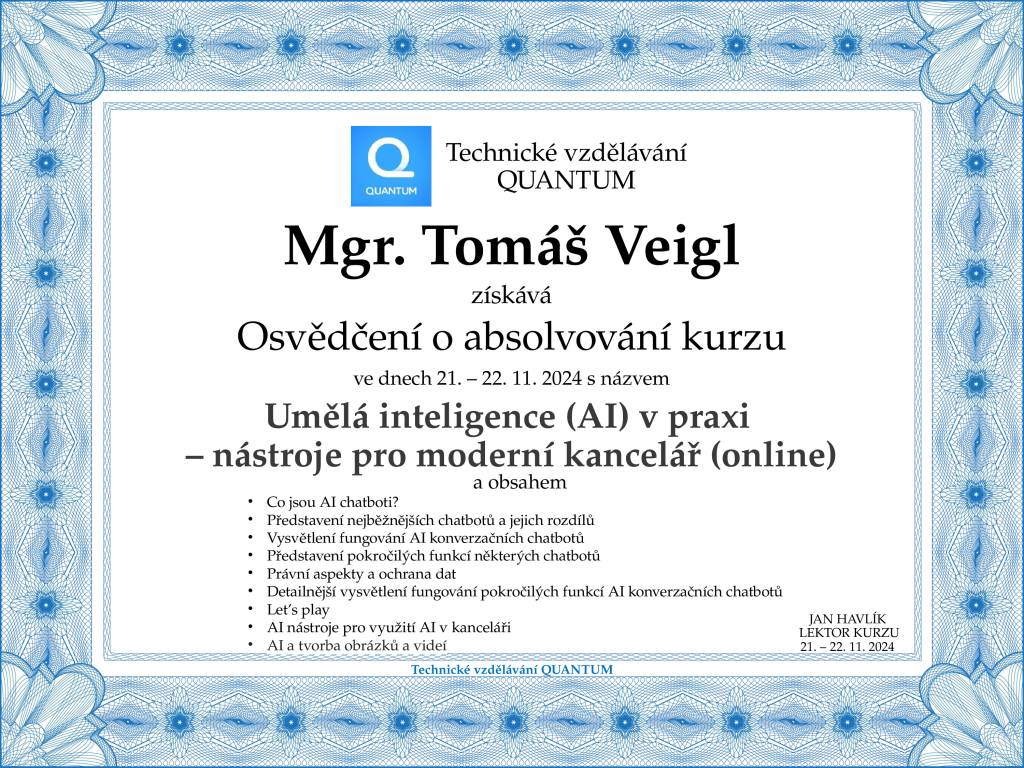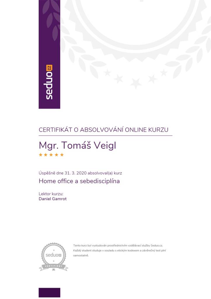 S prací pana Veigla jsme byli nadmíru spokojeni. Je velice ochotný, komunikativní, zařídí vše co je potřeba, poradí, pomůže. Jeho přístup je profesionální až nadstandardní.