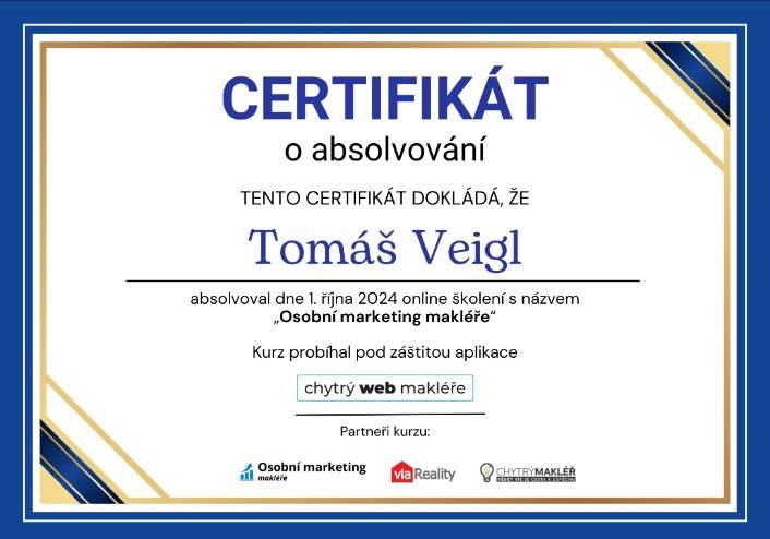 Děkuji panu makléři - Mgr. Tomáši Veiglovi za velmi kvalitní servis, profesionální a lidský přístup . Z jeho strany výborná komunikace, ochota , vstřícnost. Mohu doporučit. Z.Urbancová