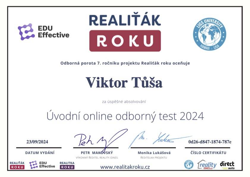 Velice děkujeme za pomoc s prodejem naší nemovitosti. Veškeré naše dotazy byly vždy zodpovězeny rychle, celkový přístup od pana Tůši byl vstřícný a profesionální. Přejeme mnoho dalších zakázek :-)