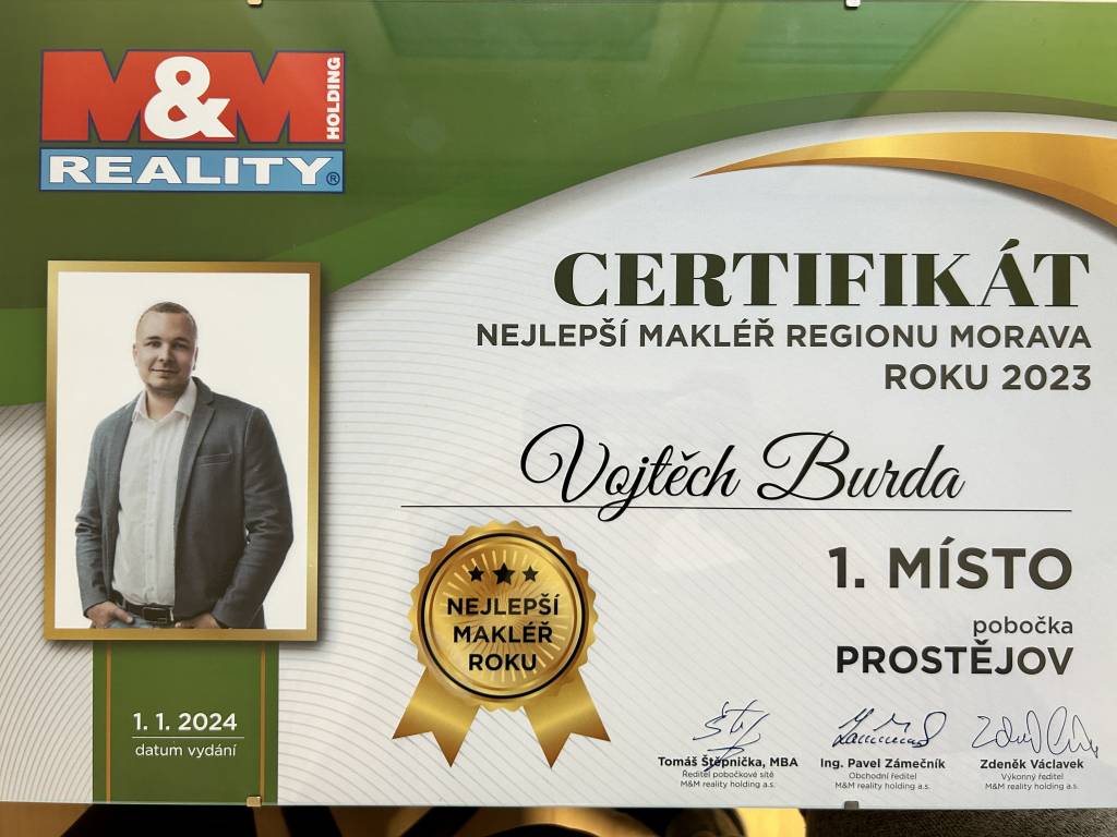 Jmenuji se Vojtěch Burda a ve společnosti M&M reality holding a.s. pracuji na pobočce Prostějov. Mým cílem je být profesionálem s lidským přístupem tak, abych dokázal pomoci při prodeji i koupi nemovistosti každému z Vás. Na prvním místě je spokojenost klienta.