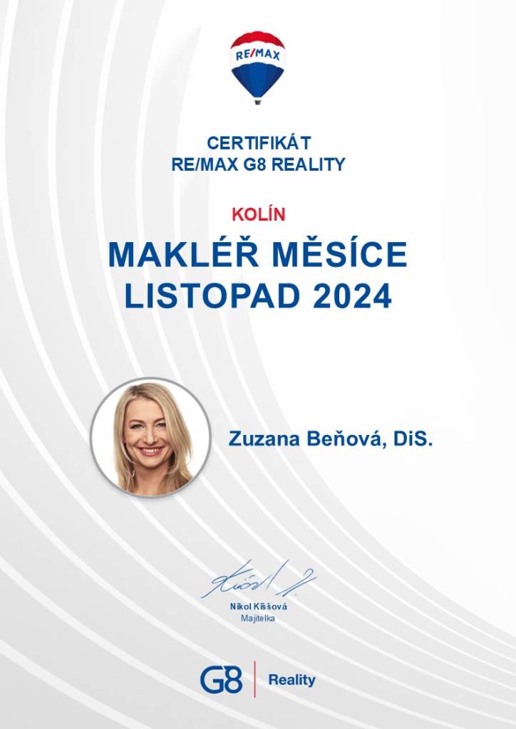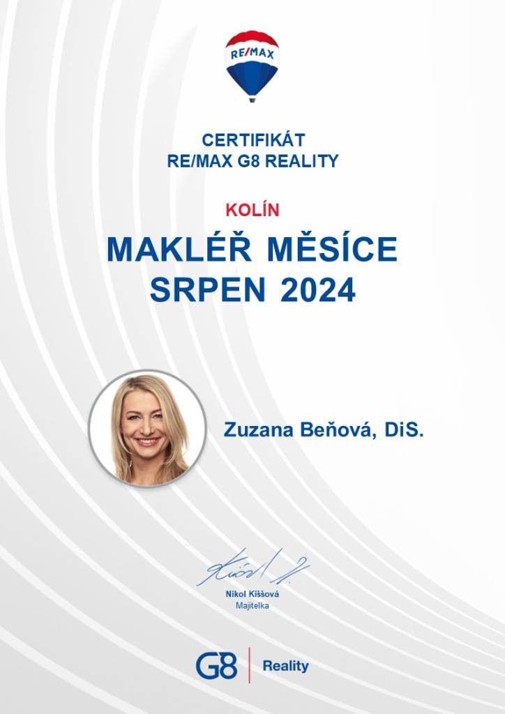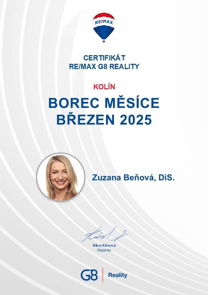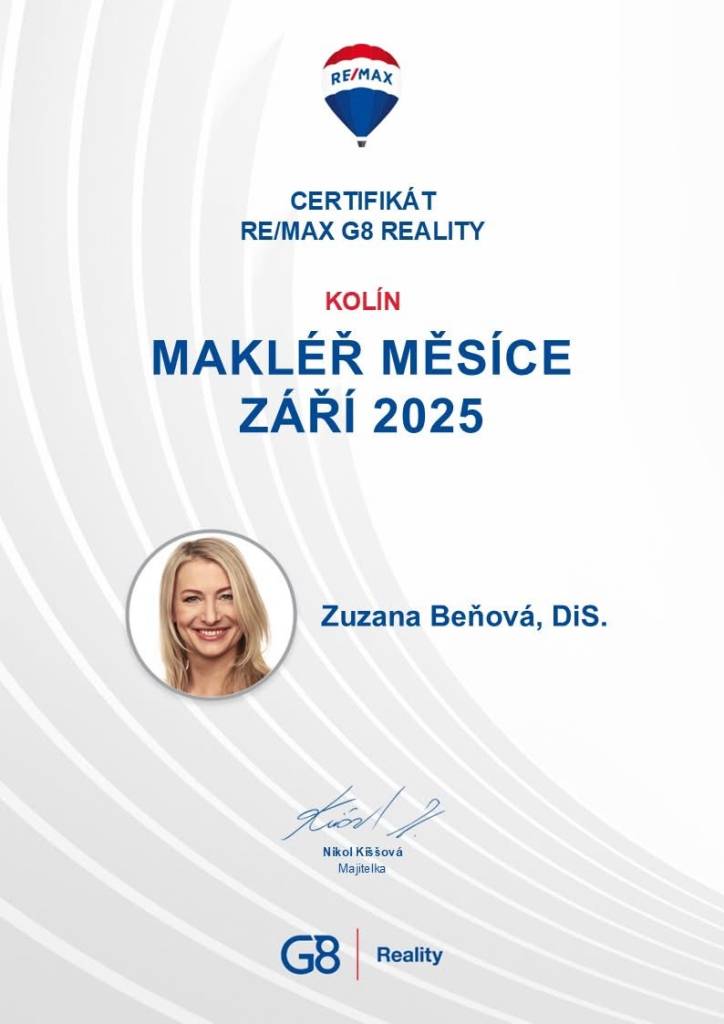 Paní Beňovou a realitní kancelář RE/MAX G8 reality mohu doporučit. Perfektní, precizní servis a příjemná spolupráce.