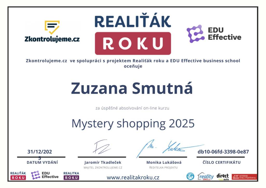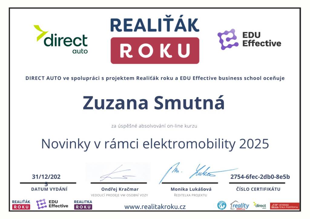 Mám zkušenost s makléřkou Zuzanou Smutnou. Při jednáních o prodeji bytu byla vždy spolehlivá, zodpovědná, přesná, dochvilná s lidským přístupem, a upřimnou snahou najít pro všechny strany kompromisní řešení. Nepoužívala žádný nátlak, což se mnoha realitních makléřích řici nedá. Mohu doporučit.
